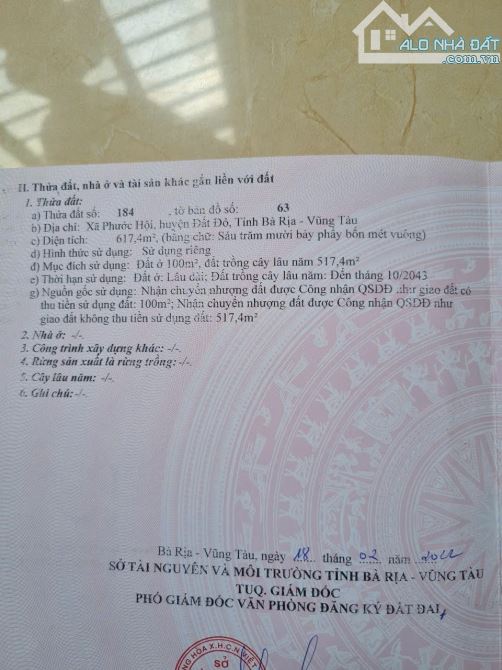 DT: 617,4m2 ngang gần 14m nở hậu 17m, có 100m2 thổ cư. Vị trí kinh doanh, buôn bán, mở quán nhậu, nhà hàng đều OK ạ. Đất gần phòng công chứng Trần Đình Nam, UBND, cách DT 44A Võ Thị Sáu tầm 70m, khu dân cư đông đúc, gần chợ, trường học, tiện ích xung quanh. Đường thông tứ hướng. Đất cao ráo, đã xây rào xung quanh. Rất thích hợp xây nhà vườn nghĩ dưỡng, mở quán nhậu, đầu tư, phân lô hoặc làm của để dành rất OK ạ. Đường tương lai còn mở rộng, giá còn tăng mạnh