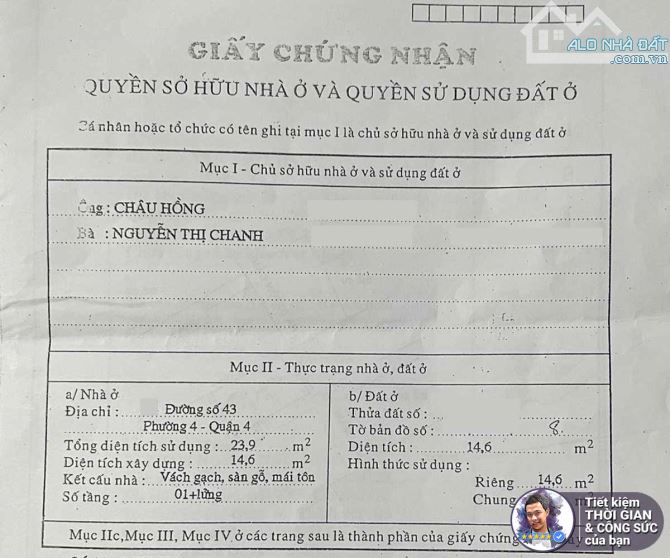 +Vị trí: mặt tiền đường số phường 4, quận 4