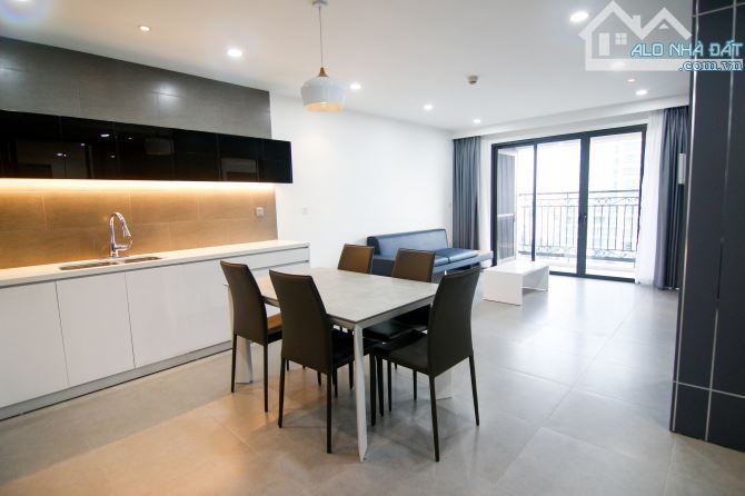 Diện tích: 115m², 3PN, trang bị đầy đủ nội thất hiện đại: Sofa, tivi, bàn ăn, máy giặt, tủ lạnh... Khách thuê chỉ việc mang quần áo vào ở. Phù hợp cho hộ gia đình người Việt Nam, người nước ngoài thuê.