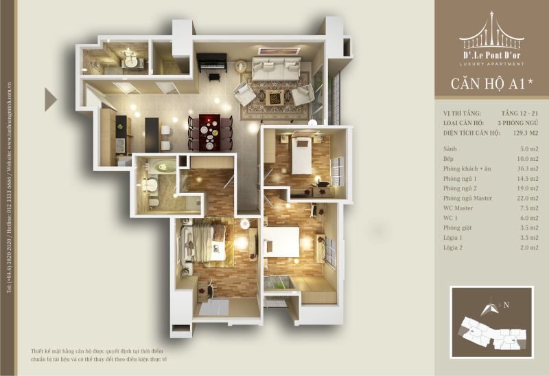 Tòa tháp D’. Le Pont D’or - Hoàng Cầu được xây dựng trên diện tích 5.363m2, gồm 308 căn hộ hạng sang với 18 loại hình thiết kế và kích thước khác nhau. Tòa tháp sở hữu đến 90% căn hộ có tầm nhìn hướng hồ với 23 tầng nổi, 4 tầng hầm để xe. Đặc biệt, công viên xanh mát với diện tích lên tới 1.594m2 được bố trí ngay trên tầng thượng của Tòa tháp mang đến cho cư dân một chốn nghỉ ngơi, thư giãn lý tưởng.