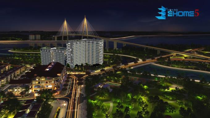 EHome 5 The Bridgeview có quy mô 20.158m2, mật độ xây dựng chỉ 36% gồm hai khối nhà cao 11-17 tầng với tổng cộng 592 căn hộ.