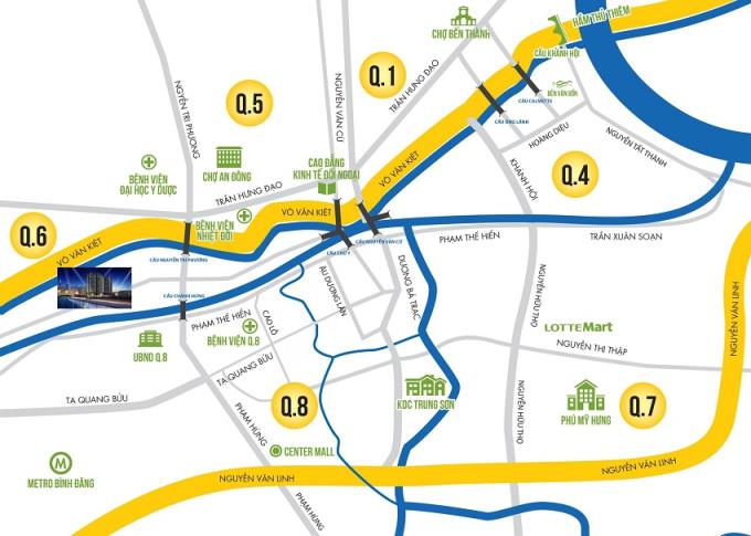 Căn Hộ Felisa Riverside quận 8 có hạ tầng giao thông đồng bộ giúp cư dân thuận tiện trong việc di chuyển đến các quận huyện trung tâm của Thành phố. Với vị trí đắc địa tại 99 Bến Bình Đông, cư dân nơi đây sẽ dễ dàng tận hưởng những giá trị và tiện ích trong khu vực. Tại đây cư dân có thể kết nối nhanh chóng các khu vực lân cận như: Quận 1, Quận 4, Quận 5 & Quận 7,…