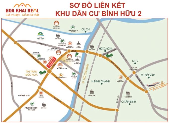 Khu dân cư Bình Hữu 2 tọa lạc ngay mặt tiền Tỉnh Lộ 824 tại trung tâm thị trấn Đức Hòa, Long An – khu vực cửa ngõ giao thương nhộn nhịp của các cụm công nghiệp lớn như Tân Đức, Tân Đô, Hải Sơn. Nơi đây còn được bao bọc với hệ thống giao thông thuận tiện như tỉnh lộ 10, tỉnh lộ 9 kết nối Đức Hòa với Bến Lức và cao tốc Sài Gòn Trung Lương, từ Trần Văn Giàu di chuyển về khu Tên Lửa Quận Bình Tân chỉ mất 20 phút. Hơn nữa trong bán kính ngắn, cư dân có thể đến công viên Võ Văn Tần, chợ Mỹ Hạnh, trường Đại học quốc tế Tân Tạo, khu Tên Lửa - Tân Bình, bệnh viện đa khoa Hàn Quốc, hồ sinh thái, ủy ban nhân dân, trường học…. Với vị trí gần Trung tâm hành chính Thị trấn Đức Hoà, dự án nằm trong khu vực có tiềm năng phát triển cực cao khi tiếp giáp với các khu công nghiệp và liền kề với nhiều tiện ích đã hiện hữu.