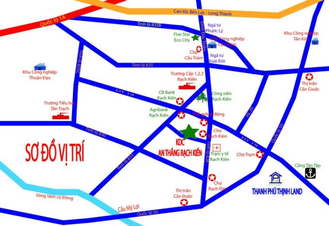 KDC Chợ Rạch Kiến tọa lạc tại ấp 1 xã Tân Trạch, huyện Cần Đước, Tỉnh Long An.
