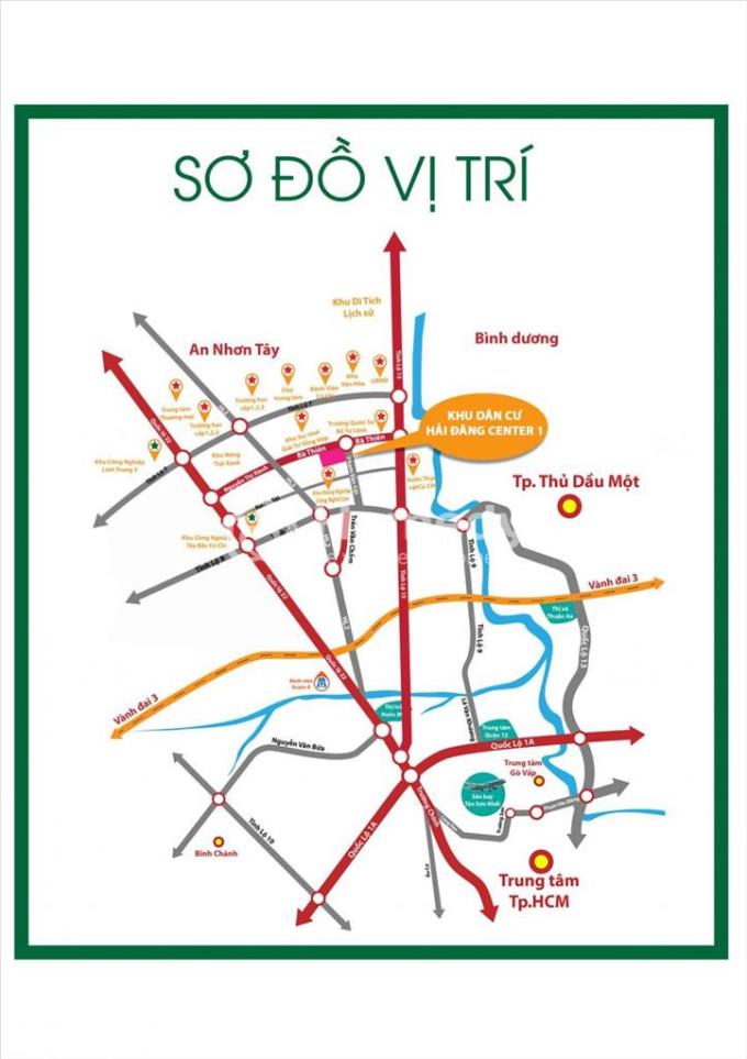 Tiện ích ngoại khu: Nằm liền kề với dự án VinCity Củ Chi, khu Thảo Cầm Viên 2 Sài Gòn Safari (500ha). Từ HẢI ĐĂNG CENTER không tốn quá nhiều thời gian, có thể dễ dàng di chuyển đến UBND Huyện Củ Chi chỉ 5 Phút, trung tâm thị trấn Củ Chi 5 Phút (Tỉnh Lộ 8).
