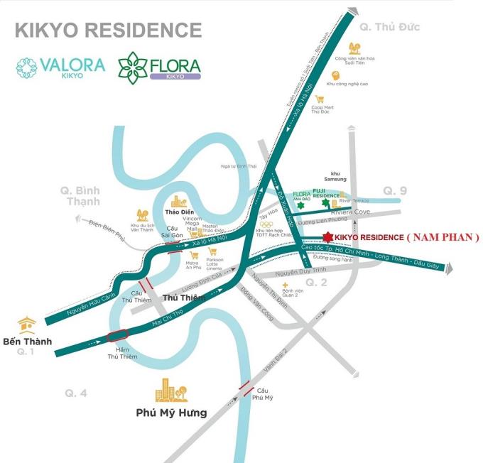 Phía Đông giáp Khu biệt thự Valora Kikyo của Nam Long.