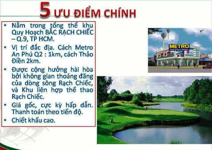 Vị trí lô đất: Khu VII - Nằm trong tổng thể quy hoạch chung của KDC Bắc Rạch Chiếc với quy mô 78 ha, bên cạnh cầu Rạch Chiếc thuộc P.Phước Long A, Q.9 – TP.HCM. Bao gồm nhiều tiện ích như: Công viên, khu thể thao, trường học, sân golf và cách trung tâm Quận 1 chỉ 10 phút đi xe, Metro An Phú 1km, Thảo Điền 2km và các tuyến đường huyết mạch Xa lộ Hà Nội,Đường Nguyễn Hữu Cảnh(Cầu Thủ Thiêm),Hầm Thủ Thiêm,Đường Vành Đai Phía Đông (Cầu Phú Mỹ ). Tạo nên sự kết nối giữa dự án với Trung tâm TP.HCM, Quận 2, khu đô thị Phú Mỹ Hưng,…. trở nên gần hơn.