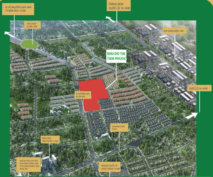 – Phía Bắc: Giáp KDC Tam Phước Sài Gòn Cây Cảnh.