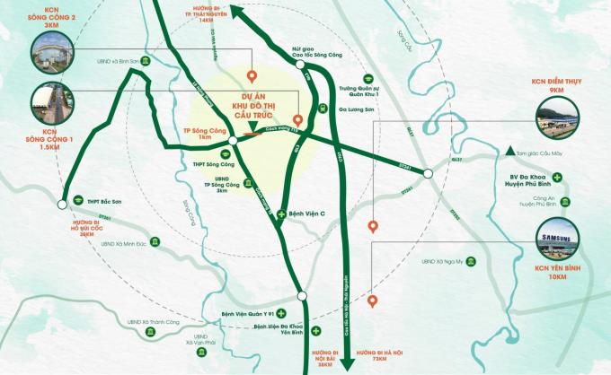Dự án Khu đô thị Cầu Trúc Sông Công được quy hoạch trên khu đất 22,8ha giáp mặt đường Cách Mạng Tháng 10 - đường trục chính của KCN Sông Công, thuộc địa phận phường Bách Quang, TP. Sông Công, tỉnh Thái Nguyên.