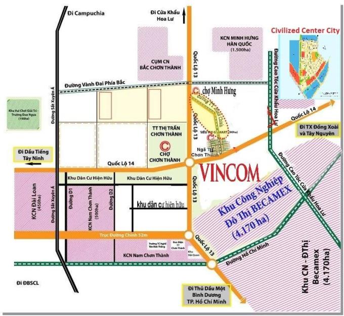Khu đô thị Civilized Center City nằm trong Khu đô thị KCN Becamex Chơn Thành, tọa lạc ngay mặt đường Đường Quốc lộ 14, Xã Minh Thành, huyện Chơn Thành, Bình Phước nên dễ dàng kết nối giao thương với các khu vực trên địa bàn tỉnh và các trung tâm kinh tế trọng điểm phía Nam qua các tuyến đường chính như Quốc lộ 13, đường Hồ Chính Minh, đường Xuyên Á, đường Mỹ Phước – Tân Vạn, cao tốc Hoa Lư, đường Vành Đai 4.