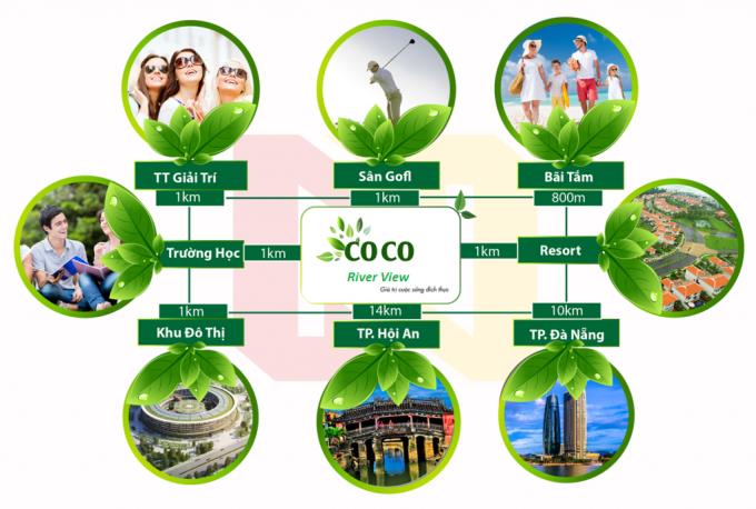 Bao quanh dự án Coco River View là các biệt thự tráng lệ, các sân golf đẳng cấp quốc tế, các resort lớn ven biển Đà Nẵng – Hội An, khu vui chơi, KCN, khu điều dưỡng …