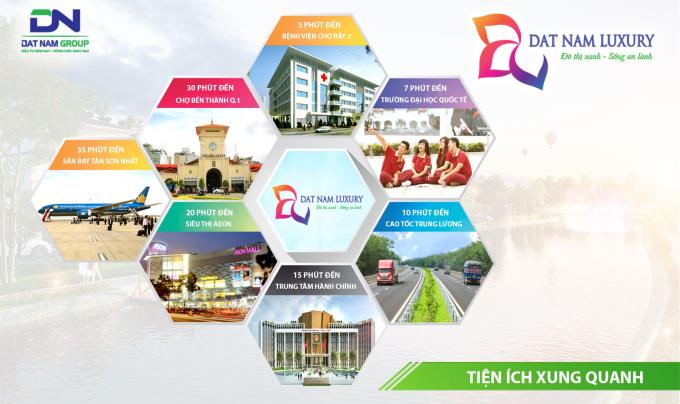 Từ dự án Đất Nam Luxury bạn có thể dể dàng di chuyển đến các quận trung tâm thành phố. Ngoài các tiện ích hiện hữu sẵn có trong dự án, bạn cũng có thể dễ dàng đến các tiện ích xung quanh như :