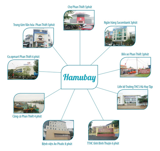Tọa lạc trên mặt tiền đường ven biển thuộc phường Lạc Đạo và phường Đức Long, cách Cảng cá Phan Thiết, chợ Phan Thiết chỉ khoảng 5 phút, Hamubay Phan Thiết sở hữu vị trí độc tôn ngay trung tâm thành phố Phan Thiết. Từ dự án chỉ cần di chuyển theo trục đường Trần Hưng Đạo vài phút là đến trung tâm hành chính thành phố Phan Thiết.