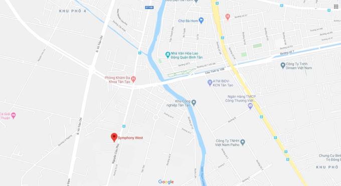 Vị trí Dự án Symphony West nằm ngay trên Mặt tiền Đường Nguyễn Cửu Phú, Phường Tân Tạo A, Quận Bình Tân, Tp.HCM. Dự án nằm trên 3 mặt tiền đường Nguyễn Cửu Phú – Võ Trần Chí – Đường S1 cách Khu Công nghiệp Tân Tạo chỉ 3km & cách Aeon Mall Bình Tân 5km,
