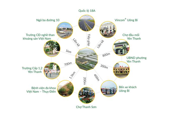 Trường học: Trường cấp 1,2 Yên Thanh ngay bên trong dự án, Trường cao đẳng nghề Than – Khoáng sản Quảng Ninh