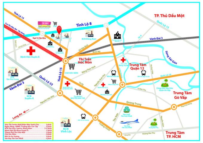 Bên cạnh đó, từ KĐT Việt Phúc, bạn cũng chỉ mất khoảng vài phút là có thể di chuyển đến Ngã Tư Tân Quy và các tiện ích hiện hữu của khu vực như TTTM Centre Mall, UBND xã Tân Thạnh Tây, chợ, trường tiểu học Tân Thạnh Tây, Ngân hàng Agribank,... để phục vụ nhu cầu thiết yếu trong cuộc sống hàng ngày.
