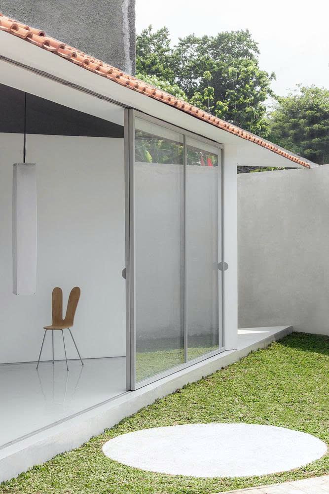 Khung nhôm mảnh và kính trong suốt giúp ánh sáng len lỏi khắp ngóc ngách, tăng cường kết nối thị giác với sân vườn