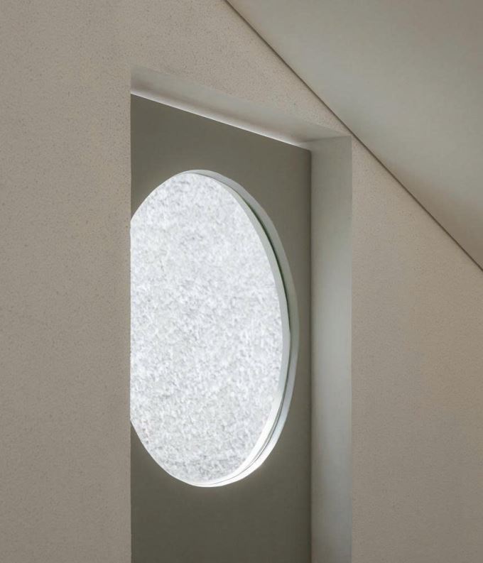 Cửa sổ tròn đặt tại vị trí mái nghiêng, tăng khả năng lấy sáng tự nhiên và tạo đường nét mềm mại cho không gian sống