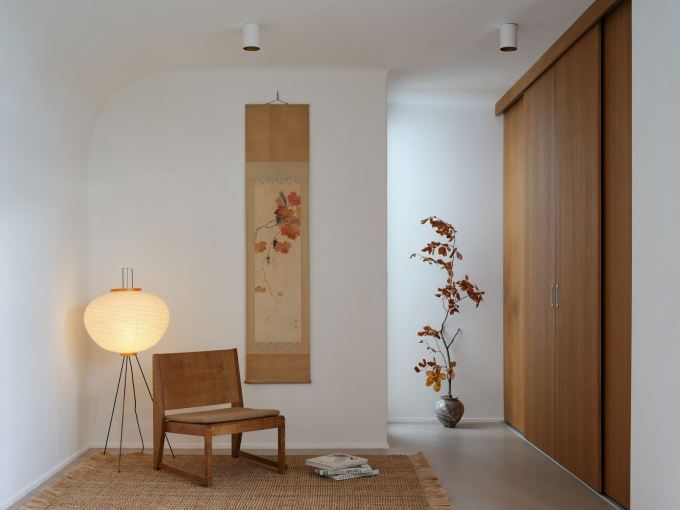 Các phòng ngủ và gác lửng thì sử dụng đèn Akari điêu khắc do Isamu Noguchi thiết kế. Ngoài ra còn có bộ sưu tập sách nghệ thuật được bày biện trong nhà