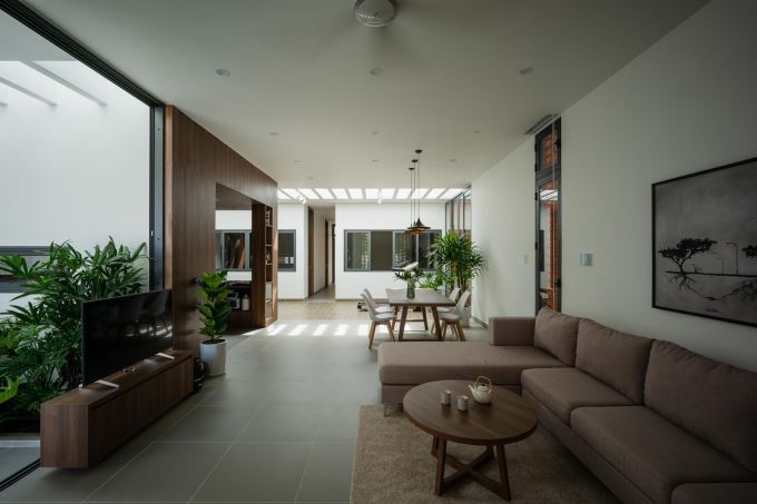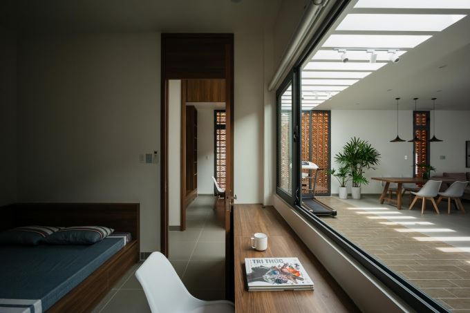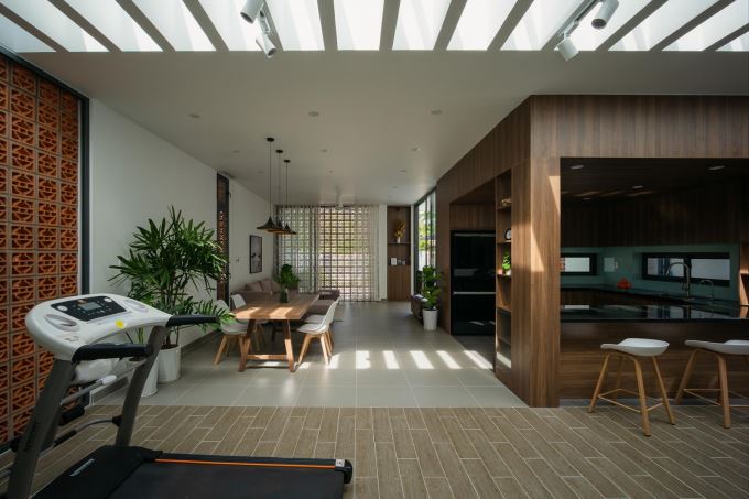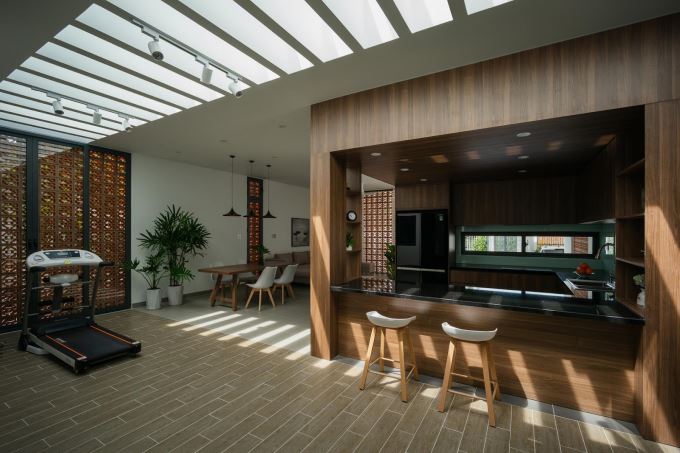 Khi lựa chọn giải pháp thiết kế, kiến trúc sư mong muốn dù sinh hoạt ở bất kỳ không gian nào, các thành viên trong gia đình đều có thể nhìn thấy nhau và trò chuyện cùng nhau, giúp bầu không khí gia đình thêm ấm cúng. Đó cũng là “chất cảm” quan trọng nhất mà nhóm thiết kế mong muốn đem lại cho khách hàng.