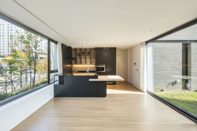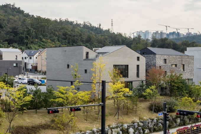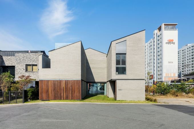 Wirye Y-HOUSE nằm trong một khu đô thị đông đúc ở Sujeong-gu, Hàn Quốc