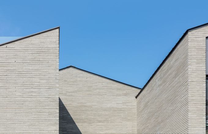Các khối tường gạch ngang đồng nhất tạo đường nét tối giản và bề mặt tinh tế