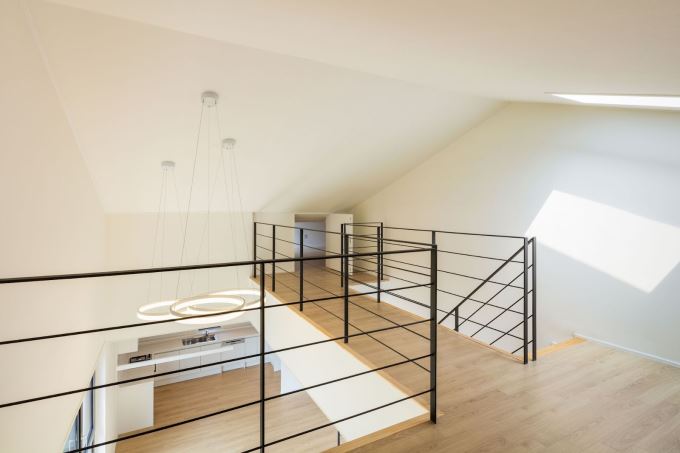 Gác xép dưới mái chữ A, mở rộng tầm nhìn xuống không gian sinh hoạt chung