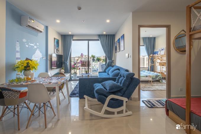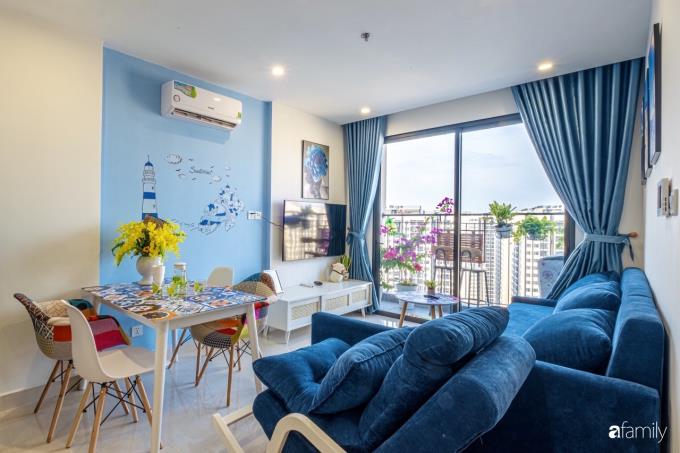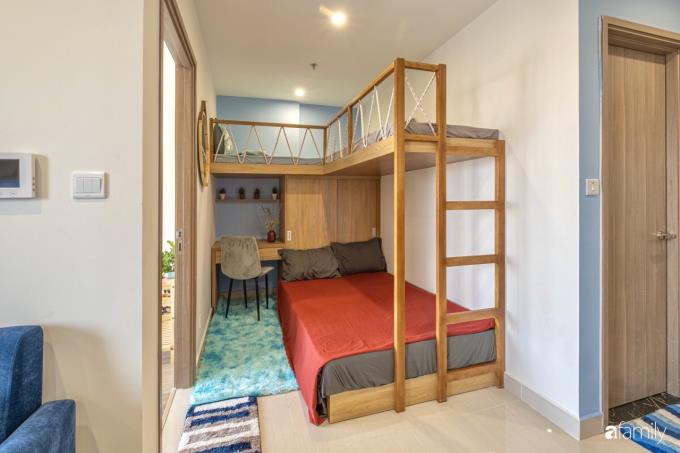 Căn hộ của chàng trai trẻ Tùng Dương mới được nhận bàn giao, cải tạo chưa được bao lâu. Vì yêu thích những ngày hè sôi động, yêu thích những chuyến đi khám phá nên không gian trên cao của Dương cũng được decor với màu xanh làm gam màu chủ đạo.