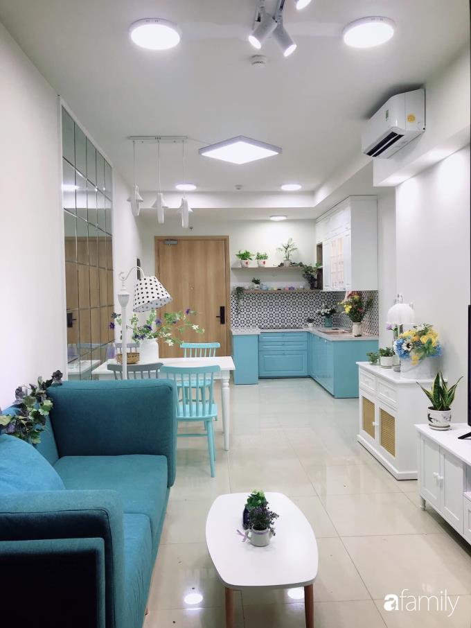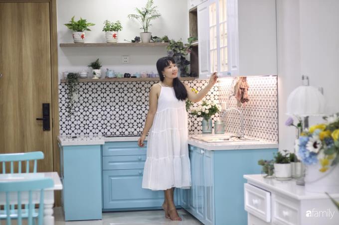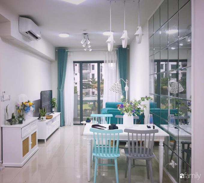 Chủ nhân của căn hộ tâm sự: "Mình thích những gì nhẹ nhàng, xinh xinh, cực yêu màu trắng và màu xanh mint pastel nên nhất định căn hộ của mình sẽ lựa chọn những tông màu ấy.