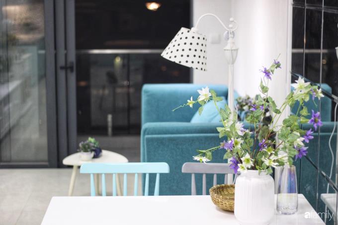 Chủ nhân căn hộ là một người phụ nữ xinh đẹp và dịu dàng. Vì thế, khi thiết kế không gian chung cư này, chị Anna Anh lựa chọn cách trang trí với màu xanh bạc hà kết hợp màu trắng dịu dàng, ấn tượng.