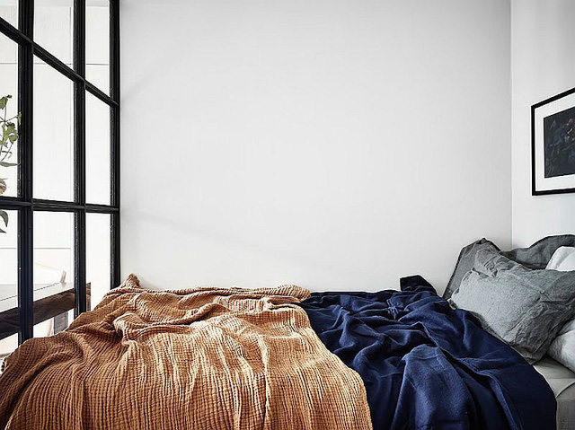 Nhìn vào bên trong phòng ngủ của căn hộ kiểu Scandinavia nhỏ bé.