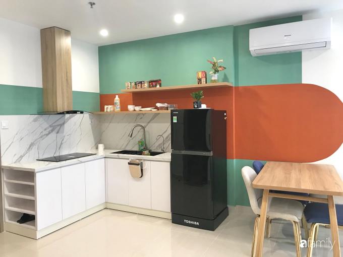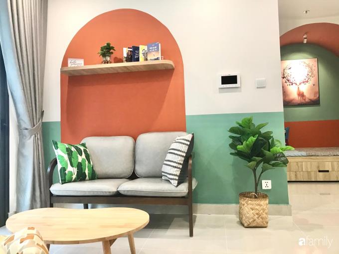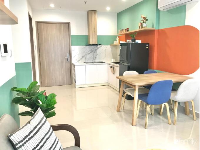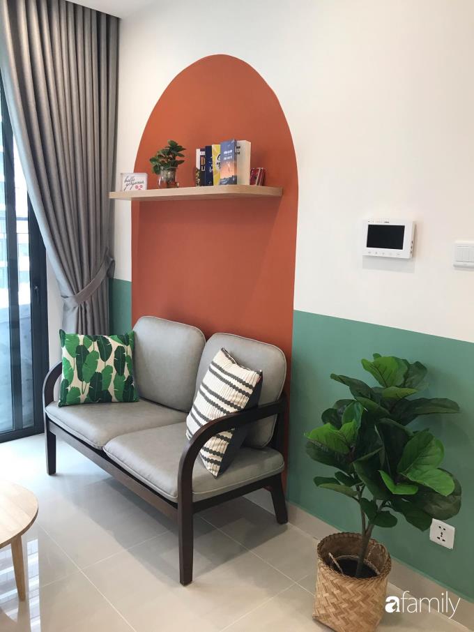 Căn hộ ở Hà Nội chỉ vỏn vẹn 43m² nhưng đẹp ấn tượng với màu cam làm điểm nhấn