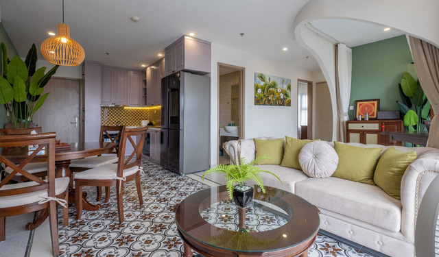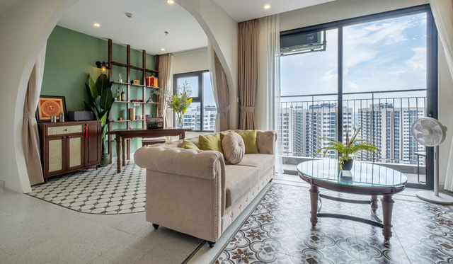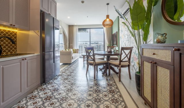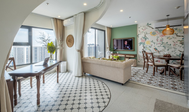 Với phong cách Indochine pha Tropical, căn hộ mang cảm giác hoài cổ nhưng không quá cũ kĩ.