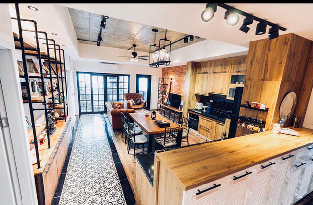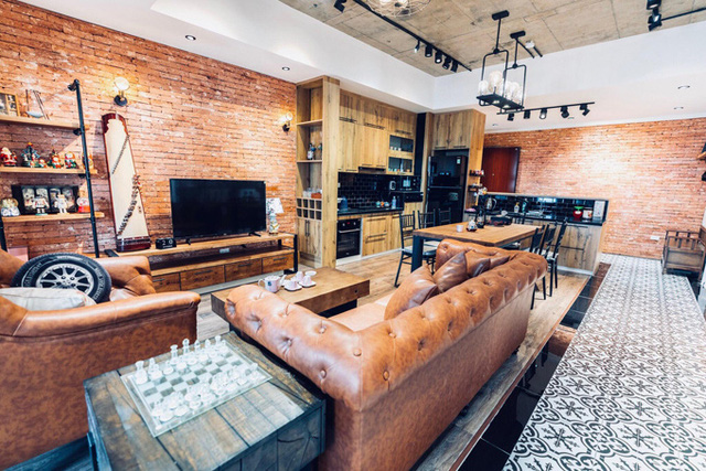 Vợ chồng chị Phạm Ngọc Diệu Khánh mất 7 tháng để xây dựng, hoàn thiện căn hộ 96,4 m2 theo phong cách công nghiệp, ưu tiên nội thất gỗ.