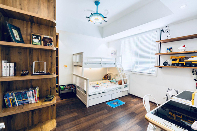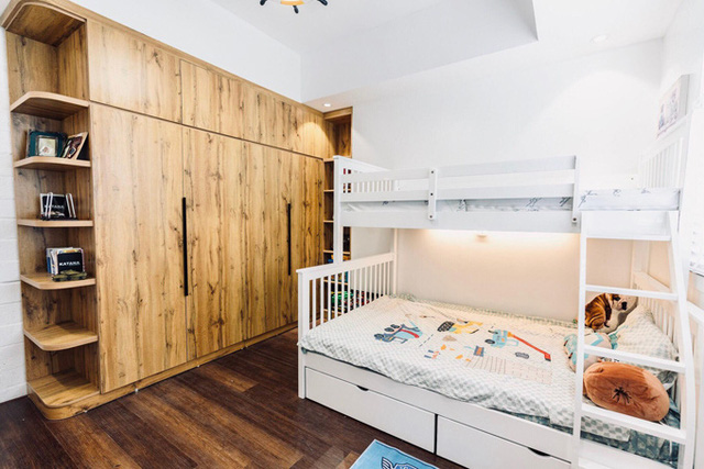 Phòng ngủ có giường tầng dành cho hai con trai chị Khánh.